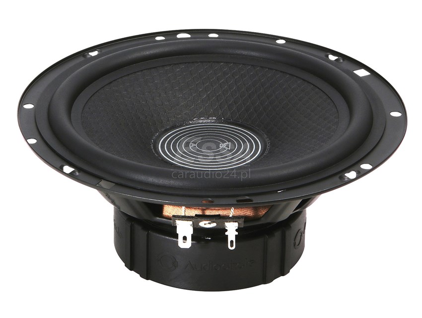 • Głośnik średnio-niskotonowy (mid-woofer):  stalowy kosz 165 mm, membrana ze strukturalnego papieru, gumowe górne zawieszenie