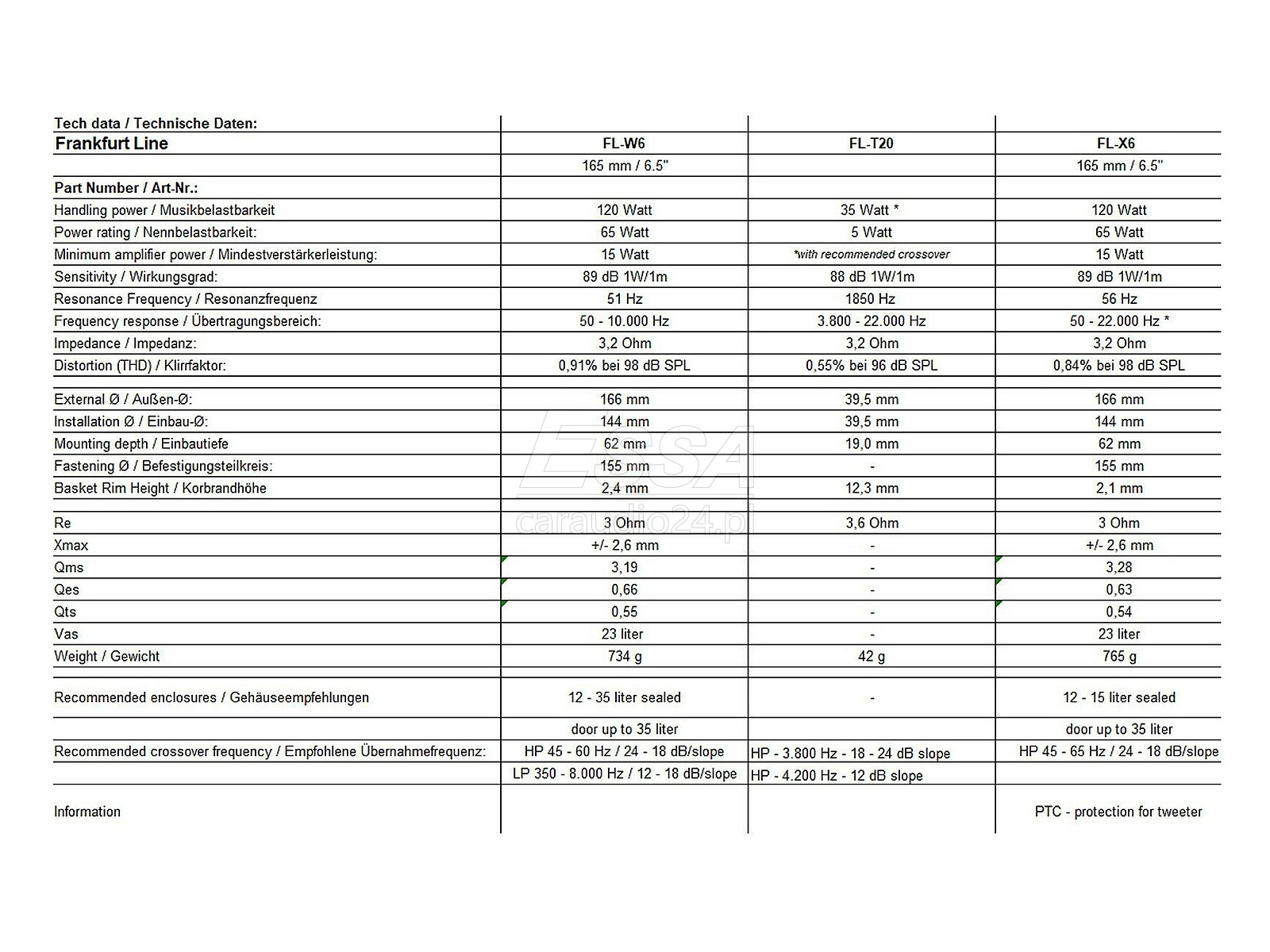 Głośniki z serii Frankfurt Line są dedykowana słuchaczom, którzy od dźwięku oczekują nieco więcej niż oferują standardowe fabryczne samochodowe systemy audio. W podstawowym stopniu bezproblemowo współpracują z większością dobrych fabrycznych radioodtwarzaczy. Jednak bardziej wymagającym słuchaczom mogą zaprezentować swój pełny potencjał dopiero wówczas, gdy zostaną zasilone z zewnętrznego wzmacniacza mocy.