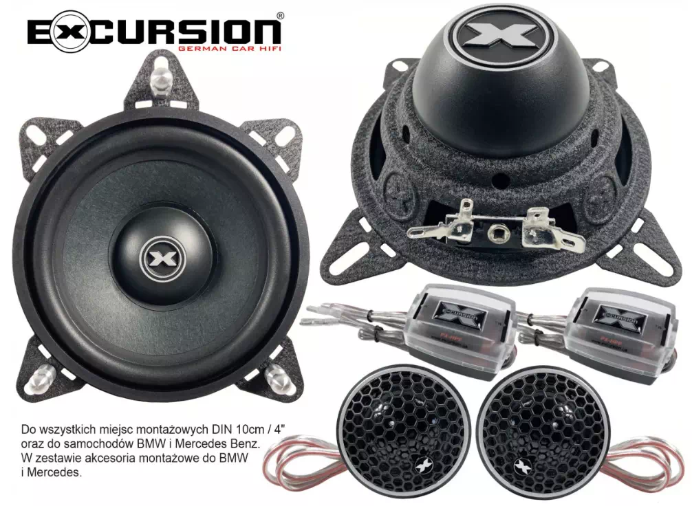 Strona główna » Car Audio » Głośniki samochodowe » Excursion PX-4C BMW i Mercedes 2-drożny zestaw głośnikowy SQ: tweetery 26mm, woofery 100mm do niektórych BMW, Mercedesa i innych - 3ohm, 75/200W, 87d