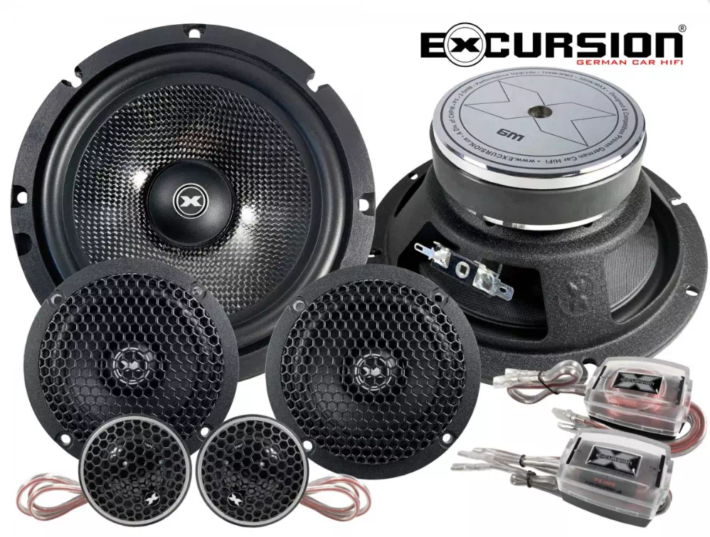 Excursion PX-6.3C  3-drożny zestaw głośnikowy SQ: 2 tweetery 26mm, 2 midrange 80mm, 2 woofery 165mm, 4 zwrotnice - 2ohm, 120/300W, 88dB, 100-30000Hz,