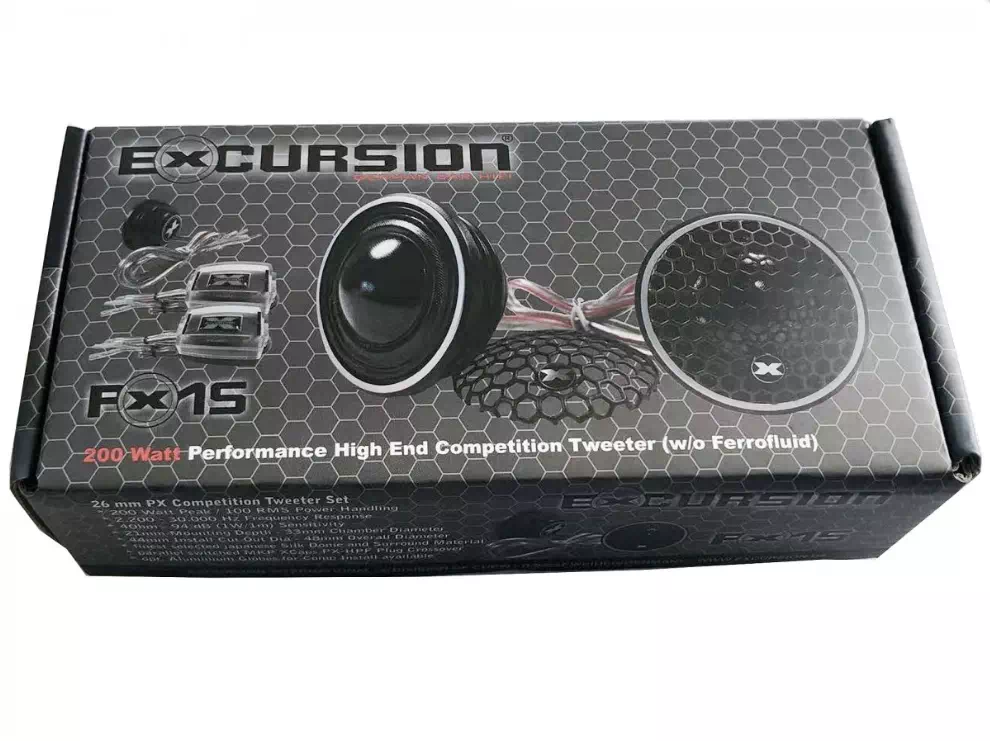 Strona główna » Car Audio » Głośniki samochodowe » Excursion PX-6.3C 3-drożny zestaw głośnikowy SQ: 2 tweetery 26mm, 2 midrange 80mm, 2 woofery 165mm, 4 zwrotnice - 2ohm, 120/300W, 88dB, 100-30000Hz,