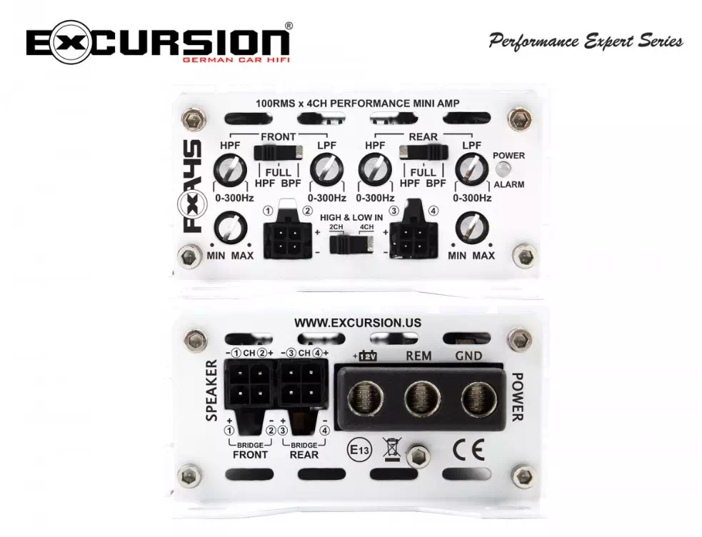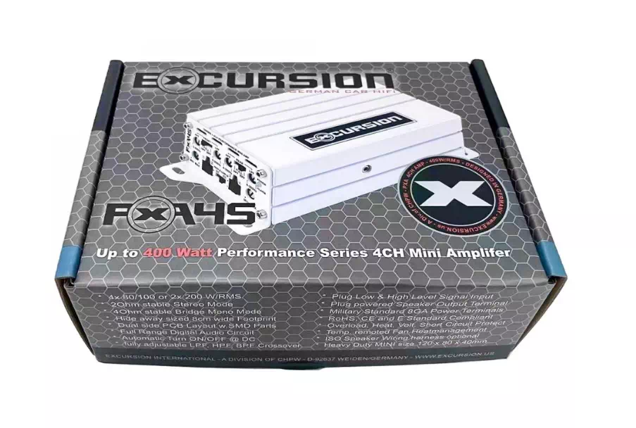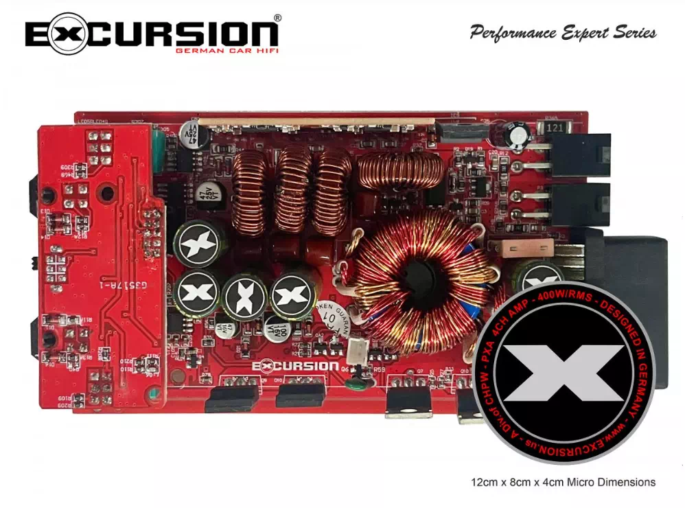 Excursion PXA-45 to nowoczesny, ultrakompaktowy 4-kanałowy wzmacniacz samochodowy z prestiżowej serii Performance Expert niemieckiej marki Excursion. Został zaprojektowany specjalnie z myślą o dyskretnej rozbudowie fabrycznych systemów nagłośnienia (OEM), oferując wyjątkowe połączenie wysokiej mocy, doskonałej jakości dźwięku i łatwej integracji Plug & Play.