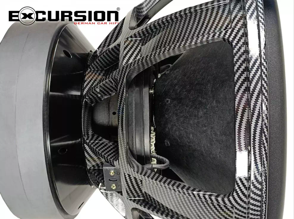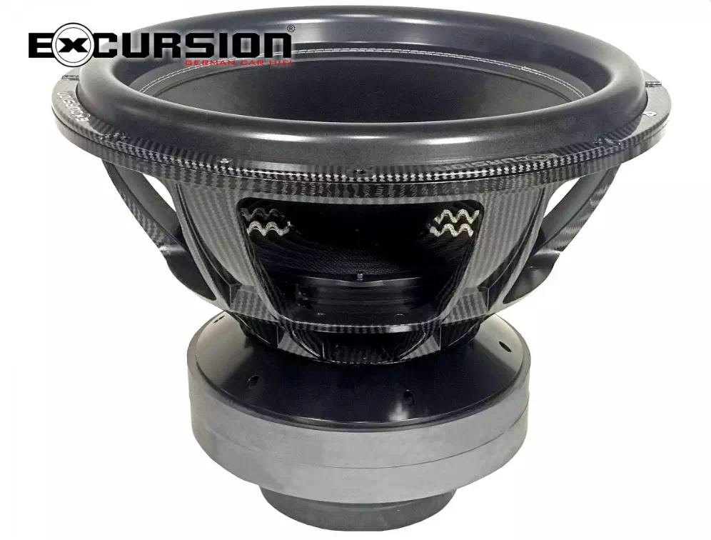 Wysoki profil górnego zawieszenia umożliwia gigantyczne wychylenia membrany. Konstrukcja jest klejona, szyta oraz dociskana aluminiowym pierścieniem z logo.