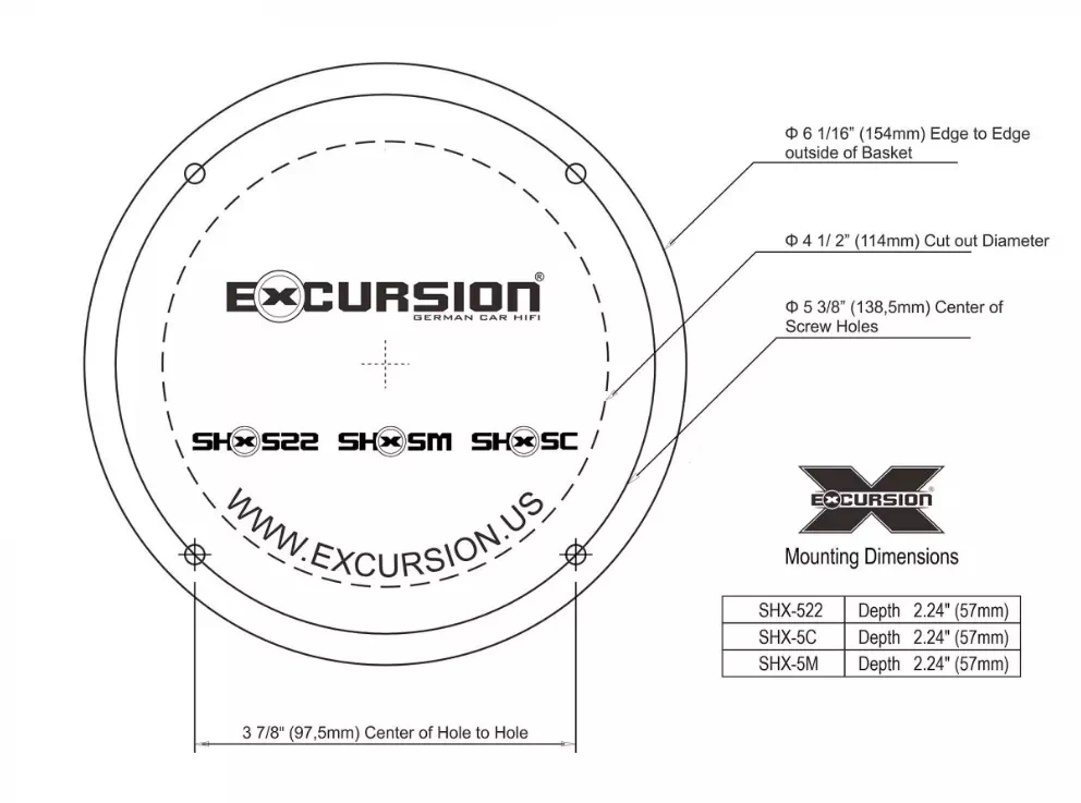 Excursion SHX-5.3C dB to zaawansowany, 3-drożny system głośnikowy klasy Street High Power eXcursion, zaprojektowany dla wymagających użytkowników oczekujących mocnego, dynamicznego brzmienia oraz wyjątkowo potężnego basu w samochodzie.