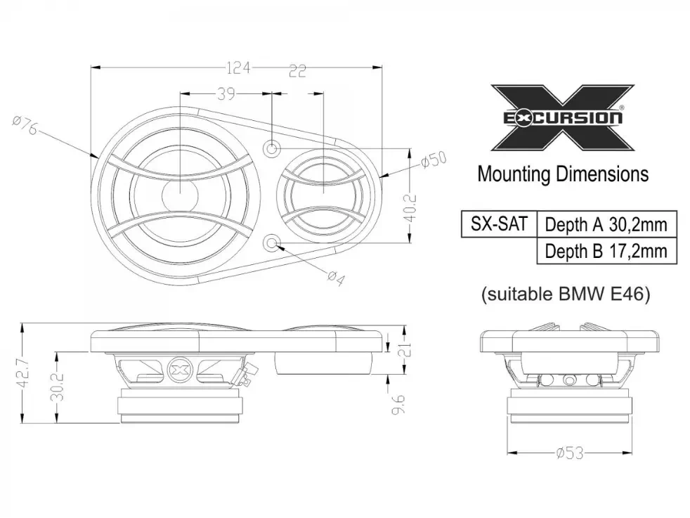 Strona główna » Car Audio » Głośniki samochodowe » Excursion SHX-5.3C dB 3-drożny zestaw głośnikowy: 4 woofery 130mm, średnio-wysokotonowa sekcja SX-SAT, 6 zwrotnic - 1.5ohm, 150/300W, 94dB, 45-20000H