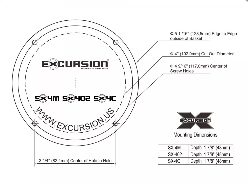 Excursion SX-4C – 2-drożny zestaw głośników odseparowanych 100 mm (4”), 4 Ohm, 50/125W