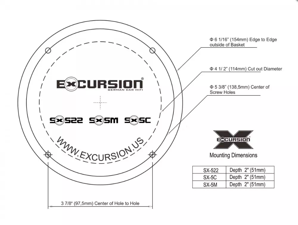 Excursion SX-5C dB – 2-drożny 4 woofery 130mm zestaw komponentowy Car Audio High Efficiency (Double Bass)